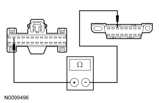 - Measure the resistance between the SJB C2280b-37, circuit VDB06 (GY/OG), harness side and the DLC C251-3, circuit VDB06 (GY/OG), harness side.