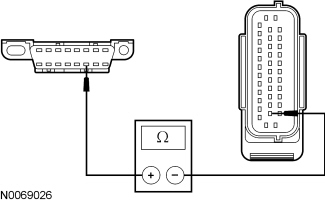 - Measure the resistance between the ABS module C135-26, circuit VDB04 (WH/BU), harness side and the DLC C251-6, circuit VDB04 (WH/BU), harness side.