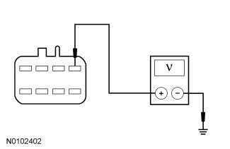 - Measure the voltage between the HCM-2 inline C913-A, circuit CBP43 (GY), harness (female) side and ground.