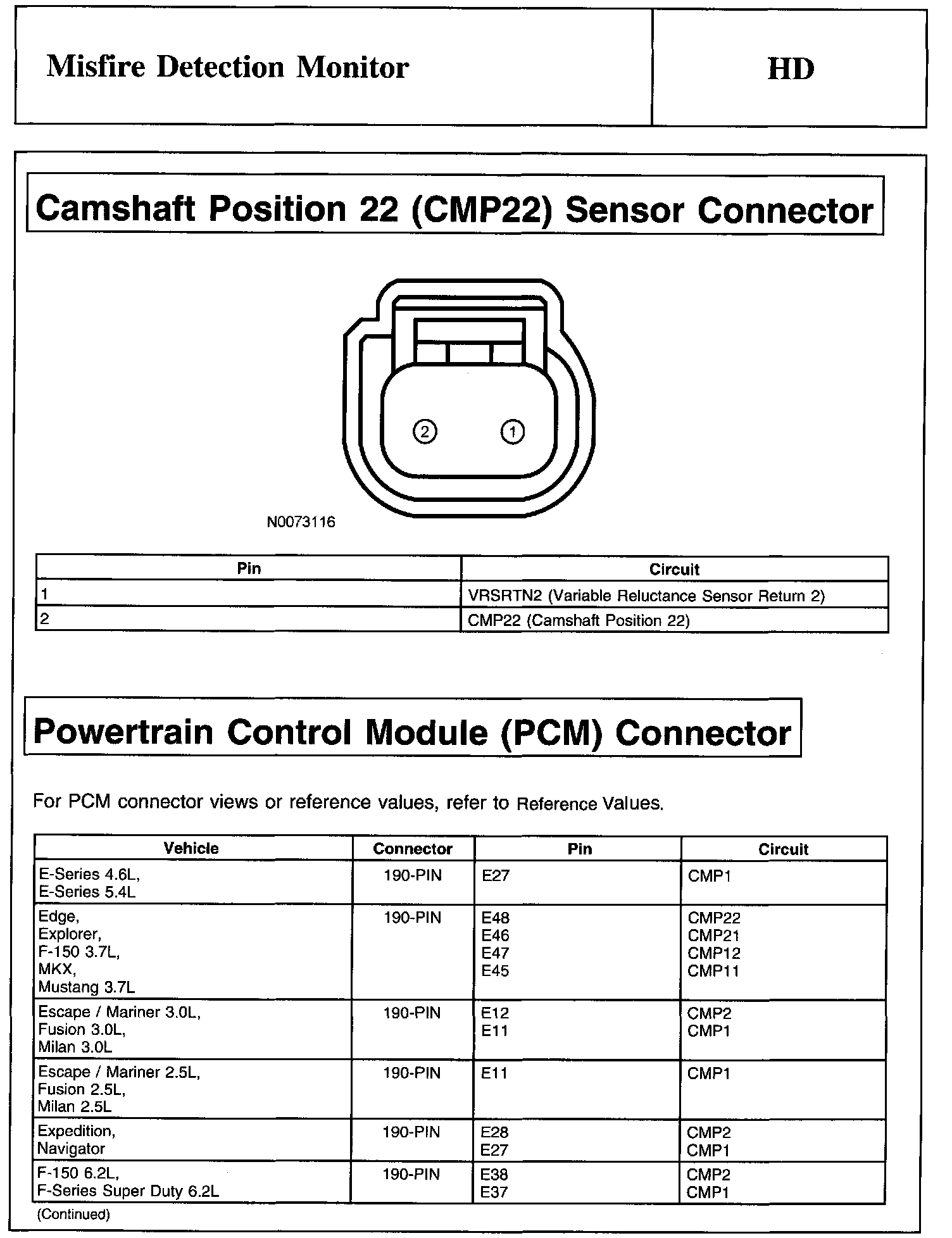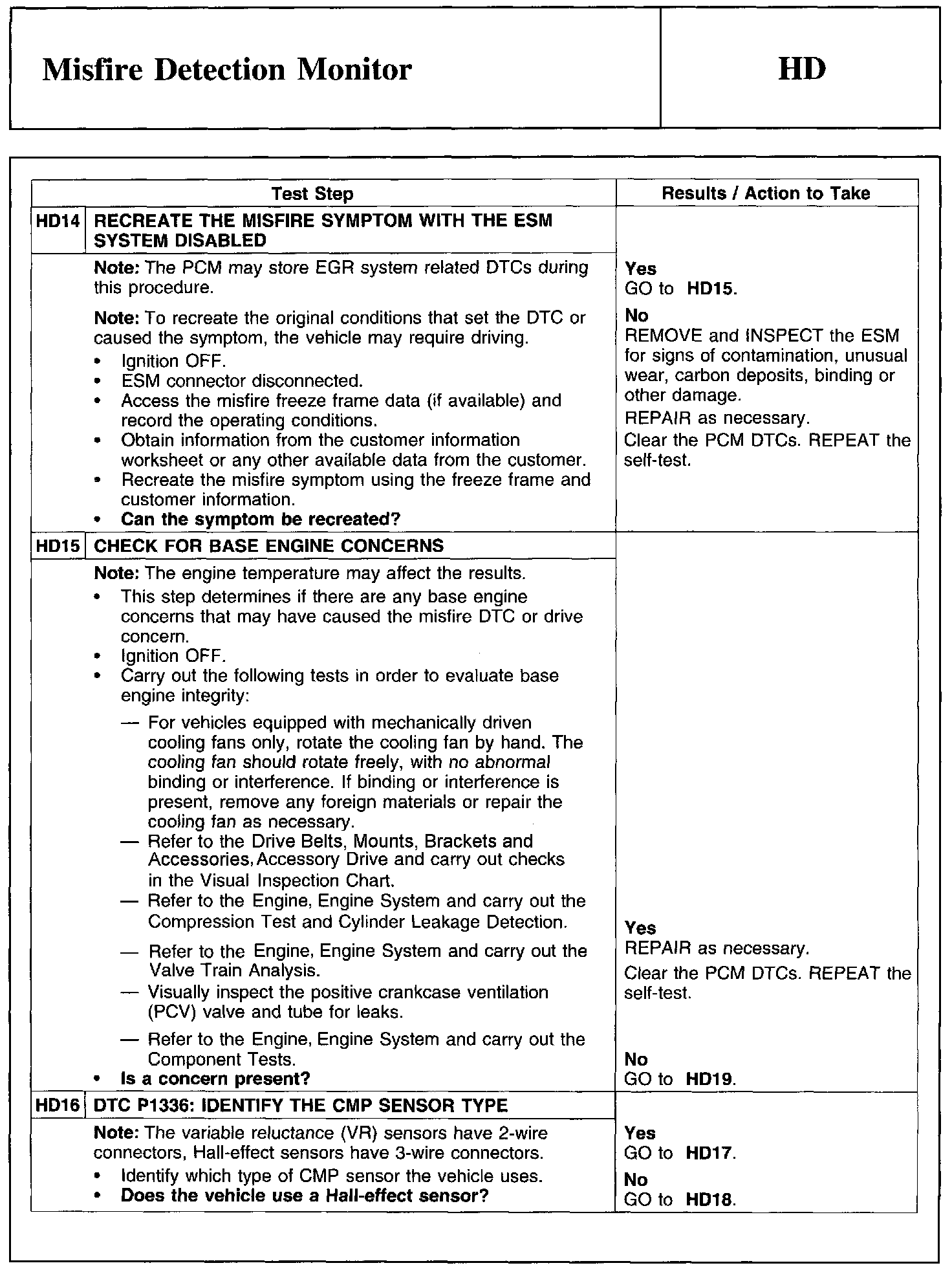 Home >> Ford >> 2011 >> Taurus AWD V6-3.5L >> Repair and Diagnosis >> Powertrain Management >> Computers and Control Systems >> Testing and Inspection >> Pinpoint Tests >> Test HD: Misfire Detection Monitor