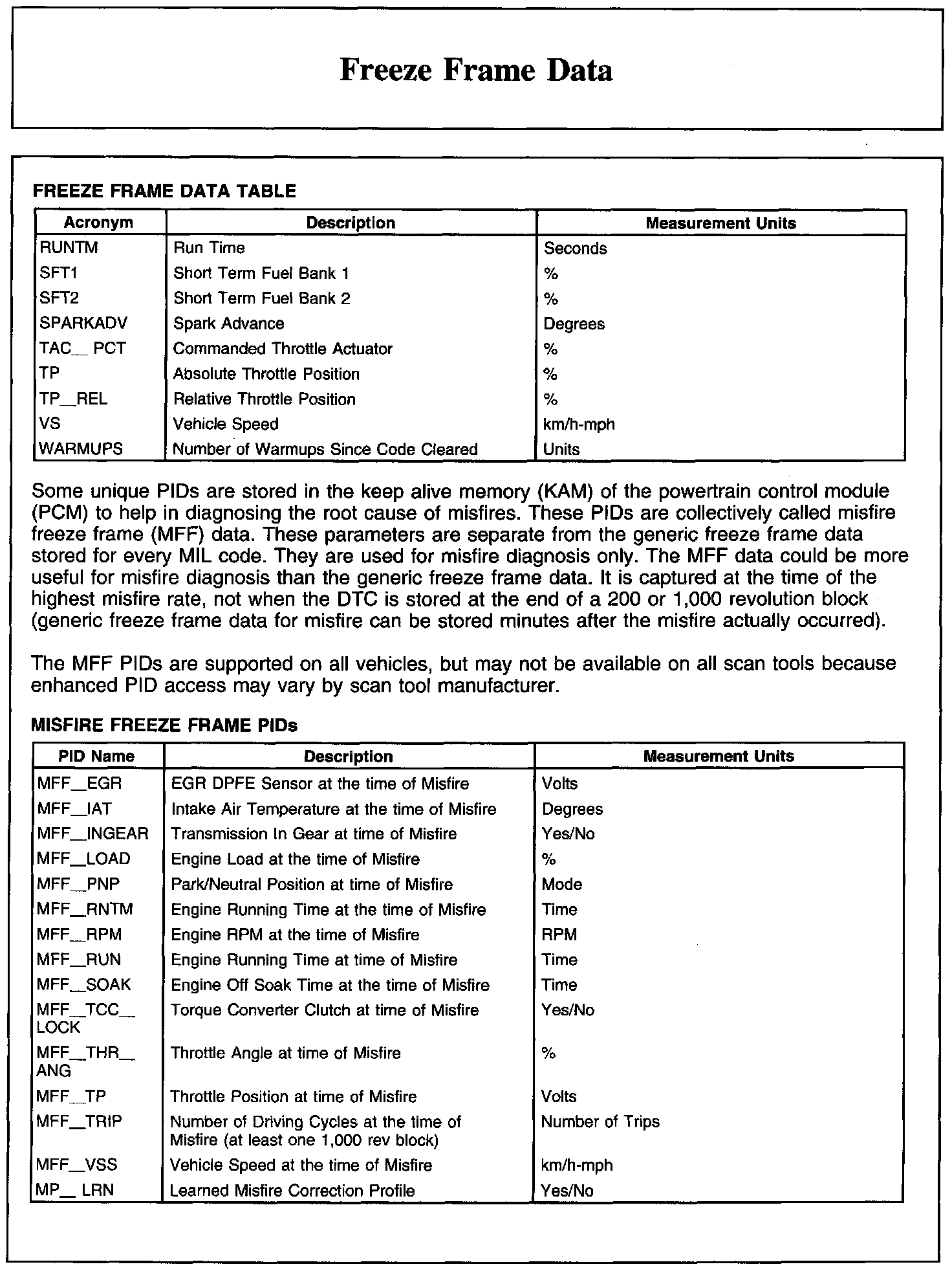 Home >> Ford >> 2011 >> Taurus AWD V6-3.5L >> Repair and Diagnosis >> Powertrain Management >> Computers and Control Systems >> Testing and Inspection >> Scan Tool Testing and Procedures >> Freeze Frame Data