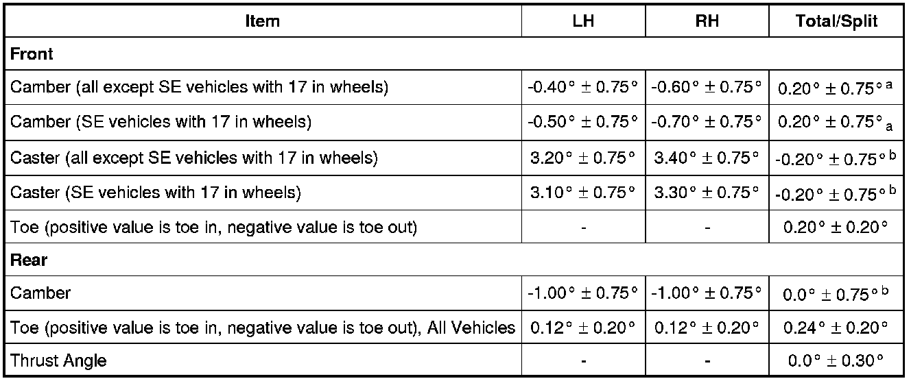 Camber Total/Split = LH Camber - RH Camber