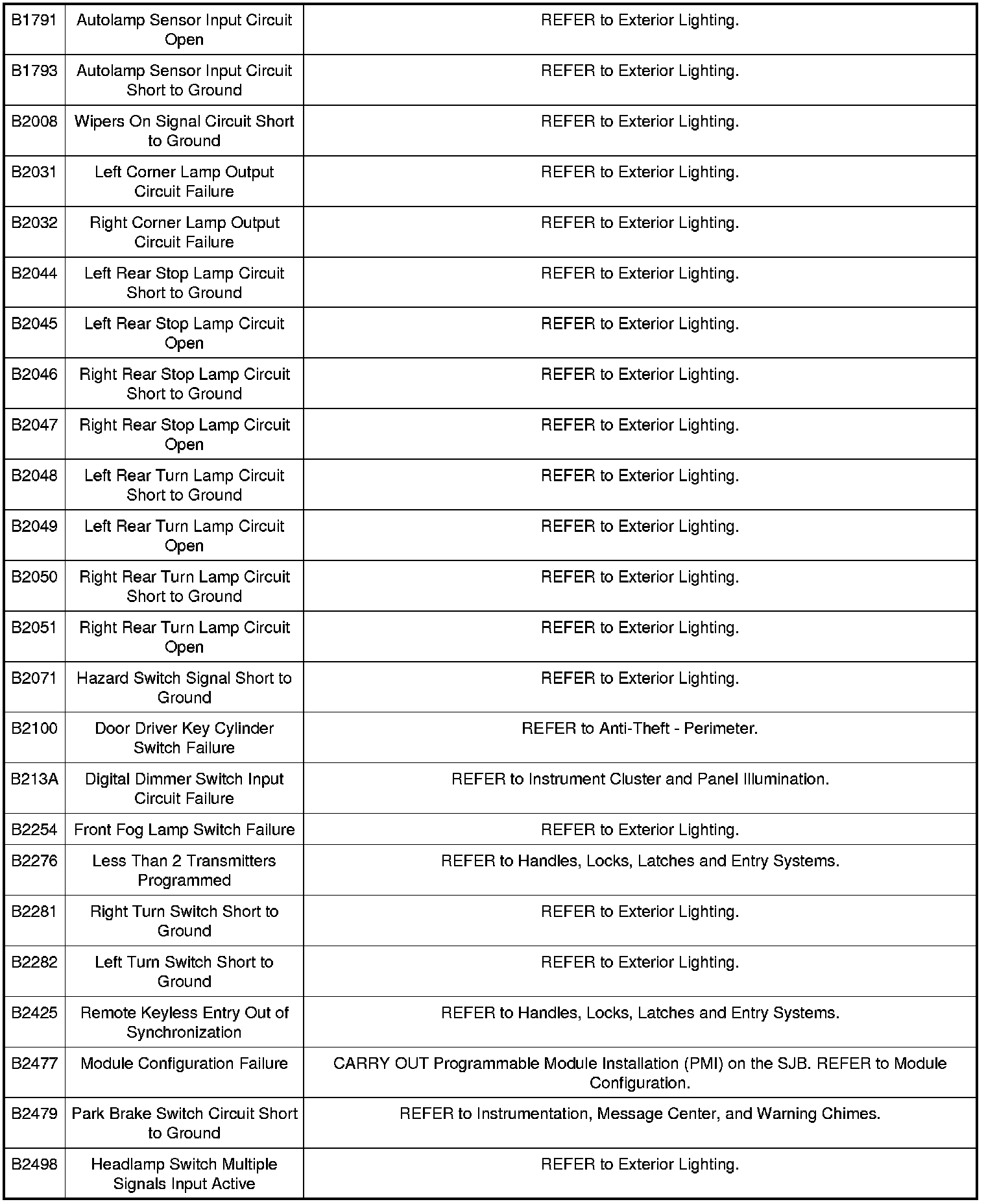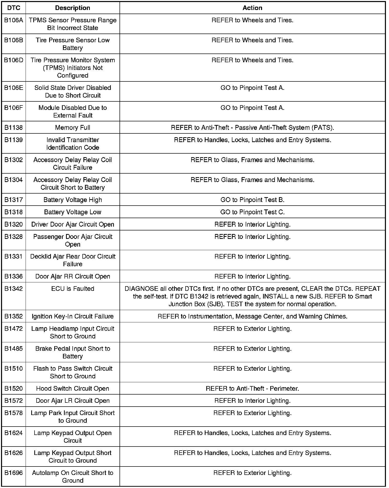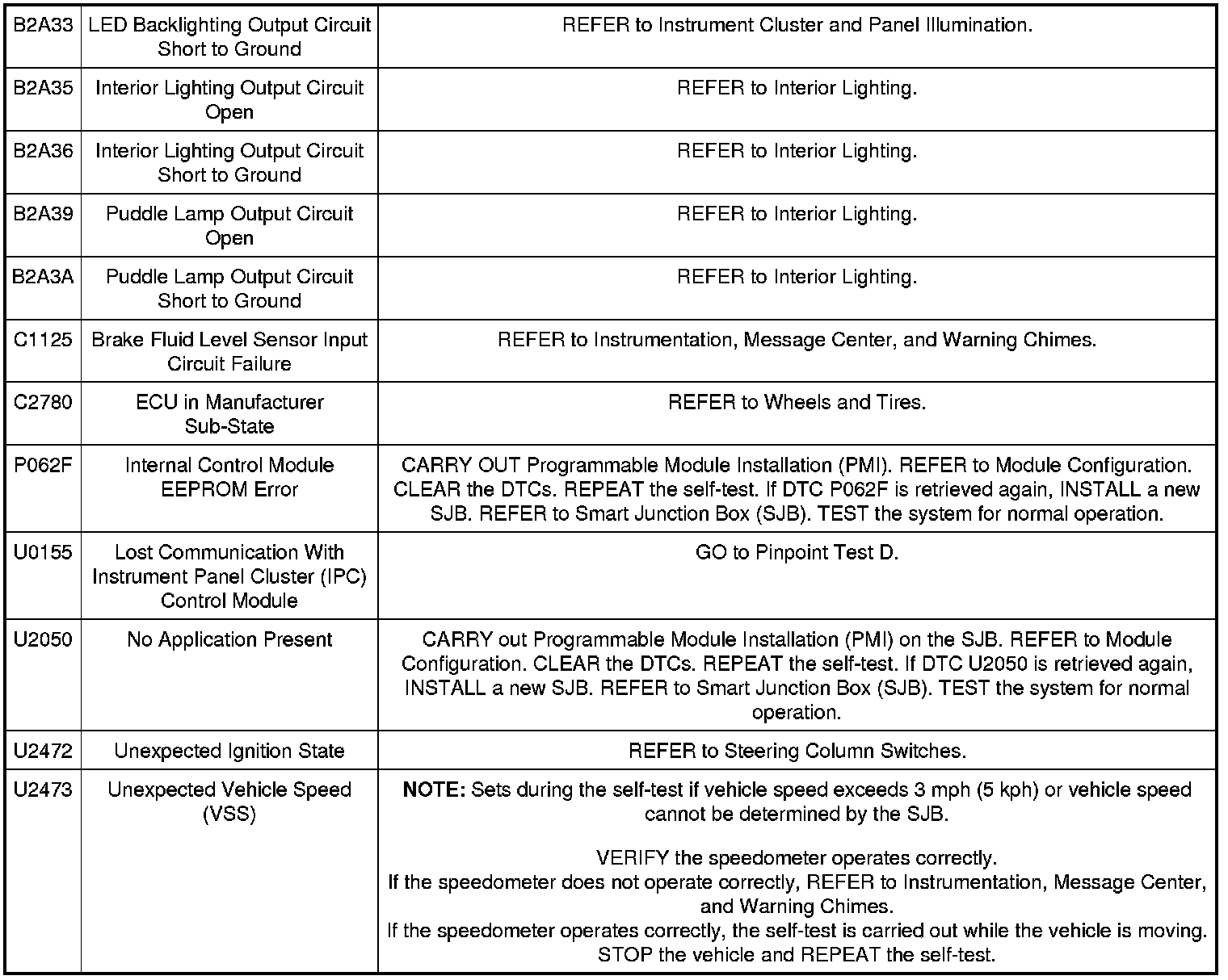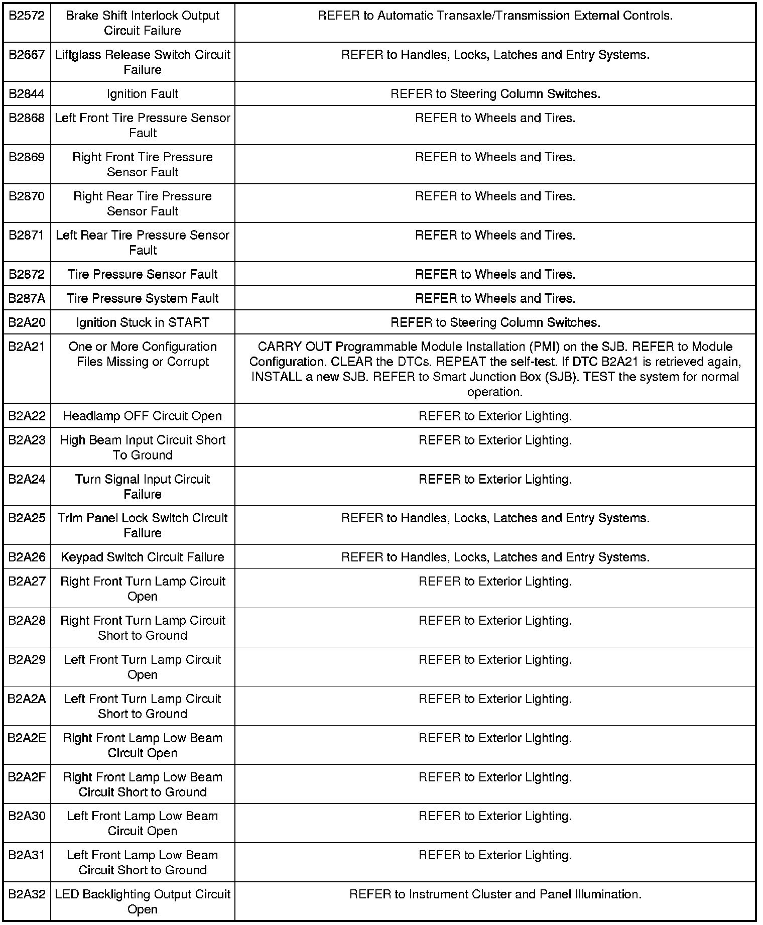 Smart Junction Box (SJB) DTC Chart