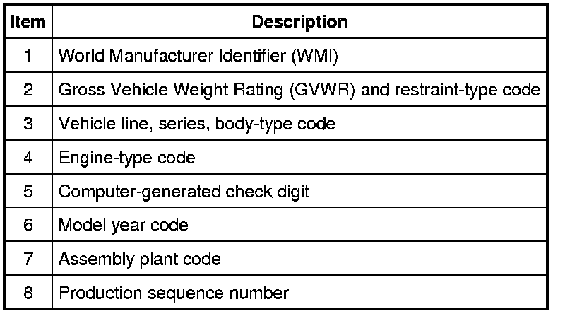 The eighth VIN position identifies the engine type, displacement and number of cylinders.
