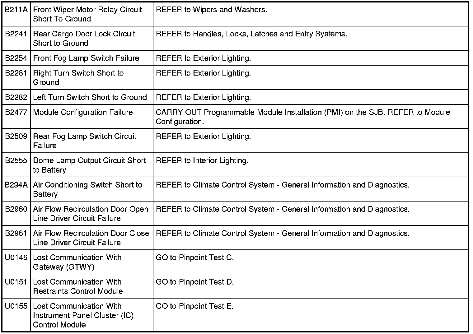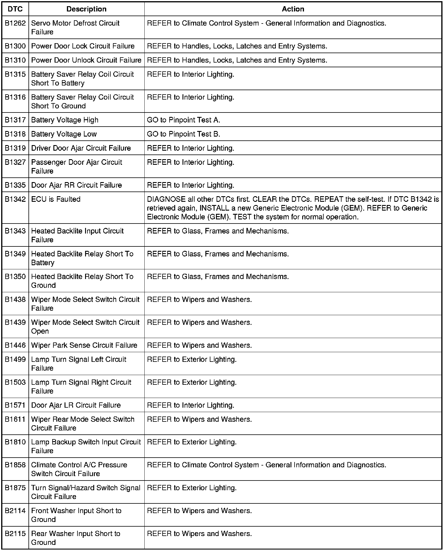 Generic Electronic Module (GEM) DTC Chart
