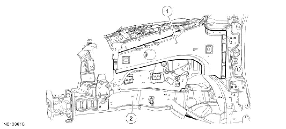 1. WARNING: Frame rail crush zones absorb crash energy during a collision and must be replaced if damaged. Straighten damaged frame rails to correct frame dimensions prior to frame member sectioning. Failure to follow these instructions may adversely affect frame rail performance and may result in serious personal injury to vehicle occupant(s).