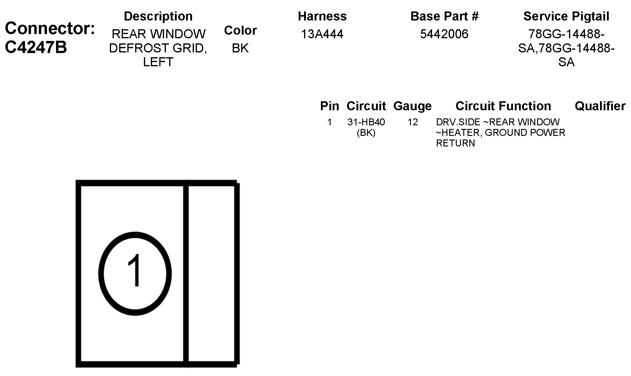 C4247B Rear Window Defrost Grid, Left