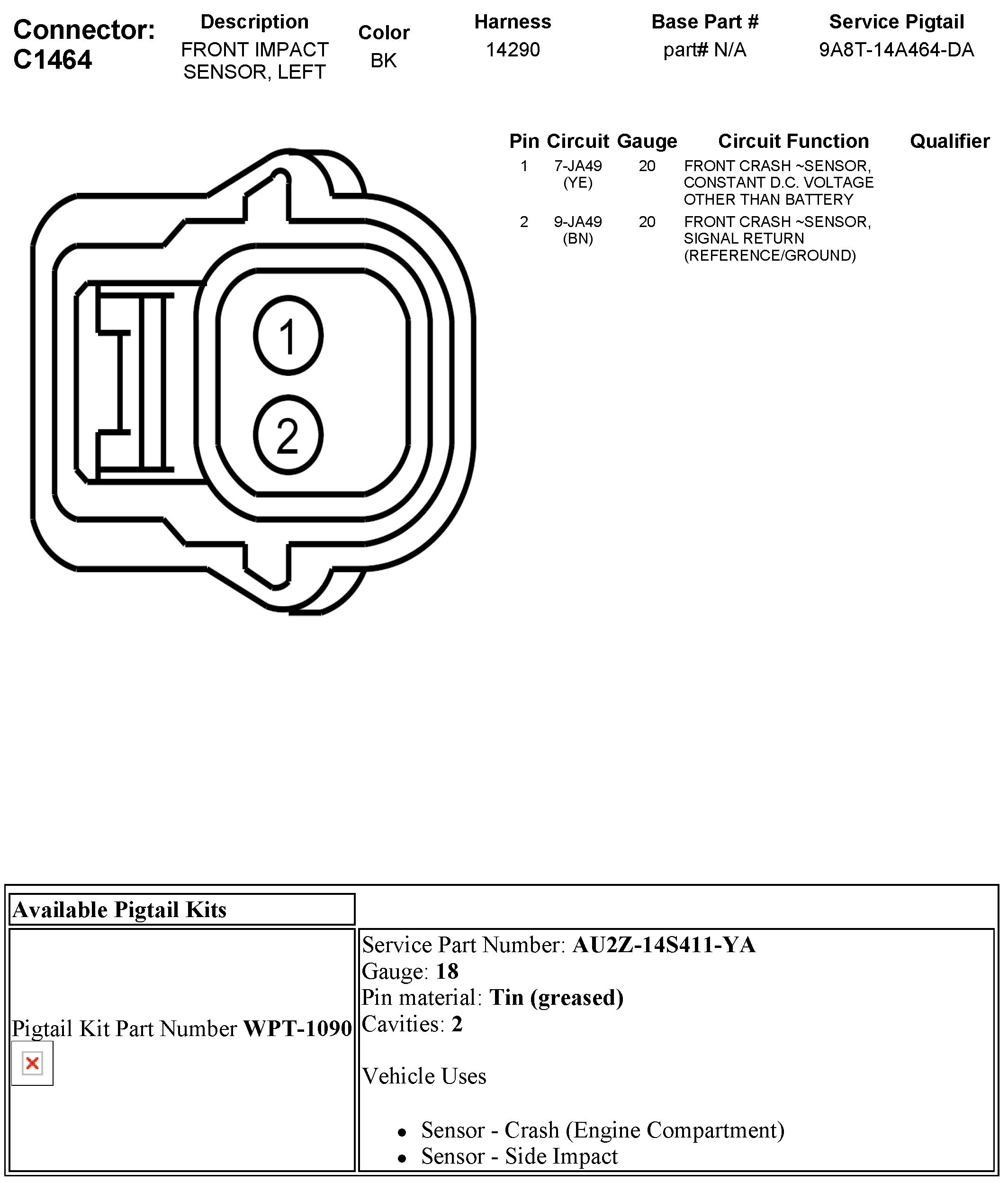 C1464 Front Impact Sensor, Left