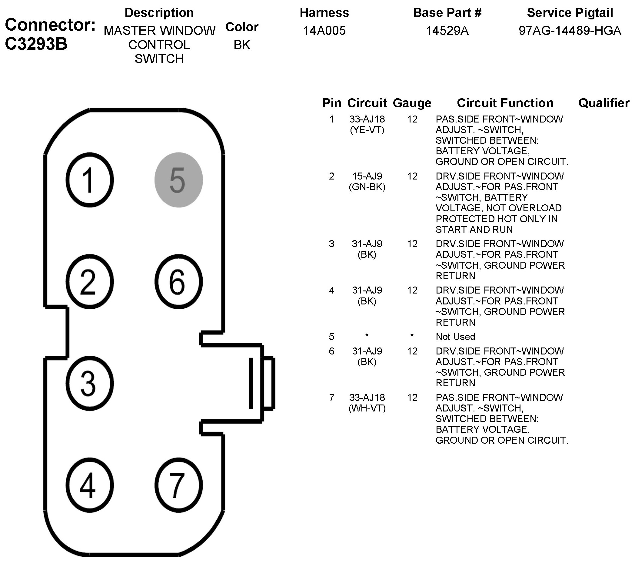 C3293B Master Window Control Switch