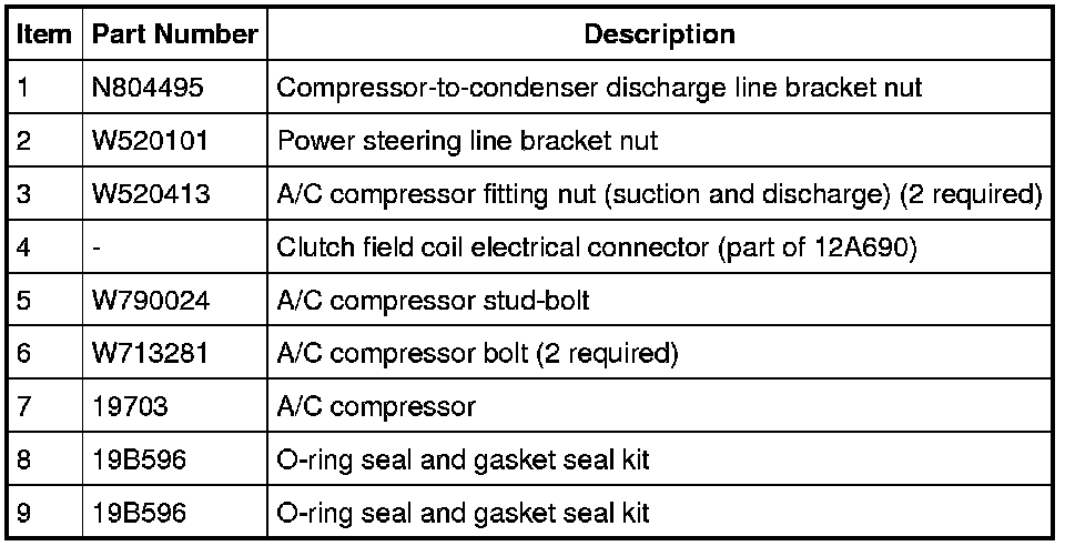 NOTICE: If installing a new Air Conditioning (A/C) compressor due to an internal failure of the old unit, the following procedures must be carried out to remove contamination from the A/C system. Failure to remove contamination from the A/C system, if present, will result in poor A/C system performance and/or damage to the new A/C compressor and other components.