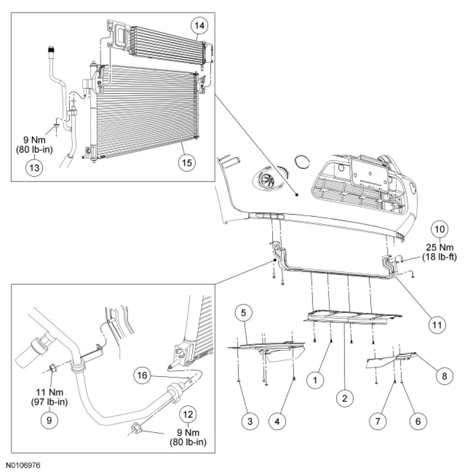 14. Evacuate, leak test and charge the refrigerant system. For additional information, refer to Climate Control System - General Information and Diagnostics Air Conditioning (A/C) System Recovery, Evacuation and Charging.