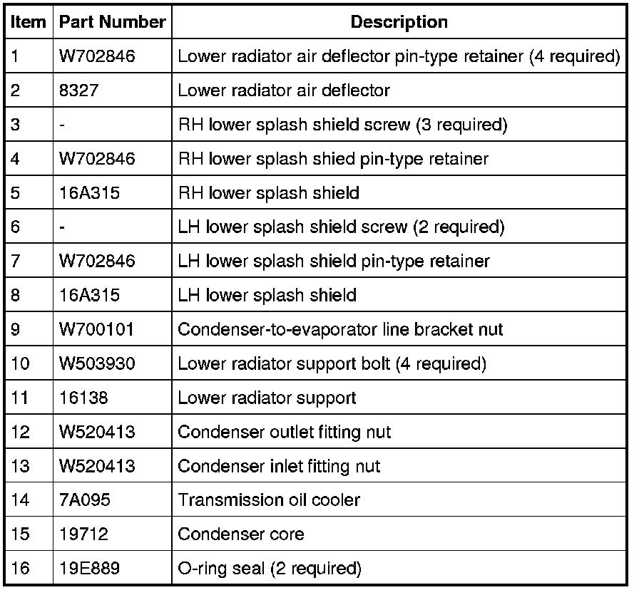 3. Remove the 4 lower radiator air deflector pin-type retainers and the lower radiator air deflector.