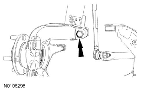 4. NOTICE: The wheel knuckle-to-strut bolt is tightened in 2 stages. Failure to follow these instructions may result in incorrect clamp load and component damage.