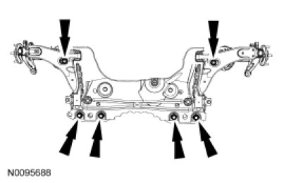 4. NOTE: Tightening the subframe bolts in the correct sequence will minimize subframe shifting.