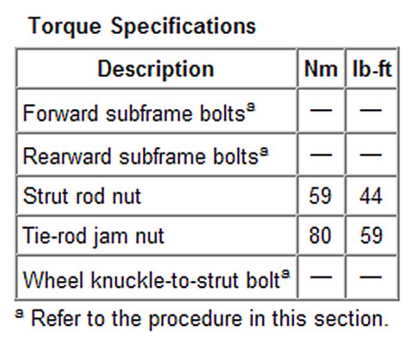 Torque Specifications: