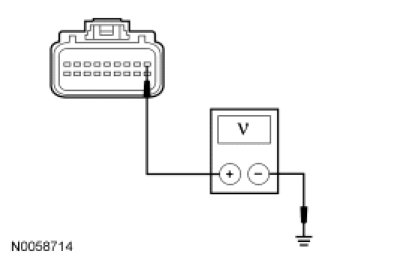 - Measure the voltage between the OCSM C3159-1, circuit 14-JA60 (VT), harness side and ground.