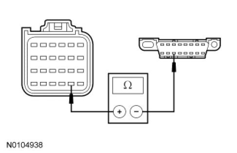 - Measure the resistance between the RCM C310a-20, circuit 5-EC5 (BU/RD), harness side and the DLC C251-11, circuit 5-EC1 (BU/RD)/5-EC13 (BU/WH)/5-EC14 (BU/BK), harness side.