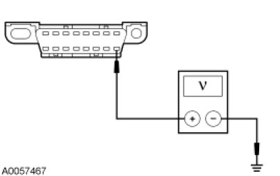 - Measure the voltage between the DLC C251-16, circuit 30-RA1 (RD), harness side and ground.
