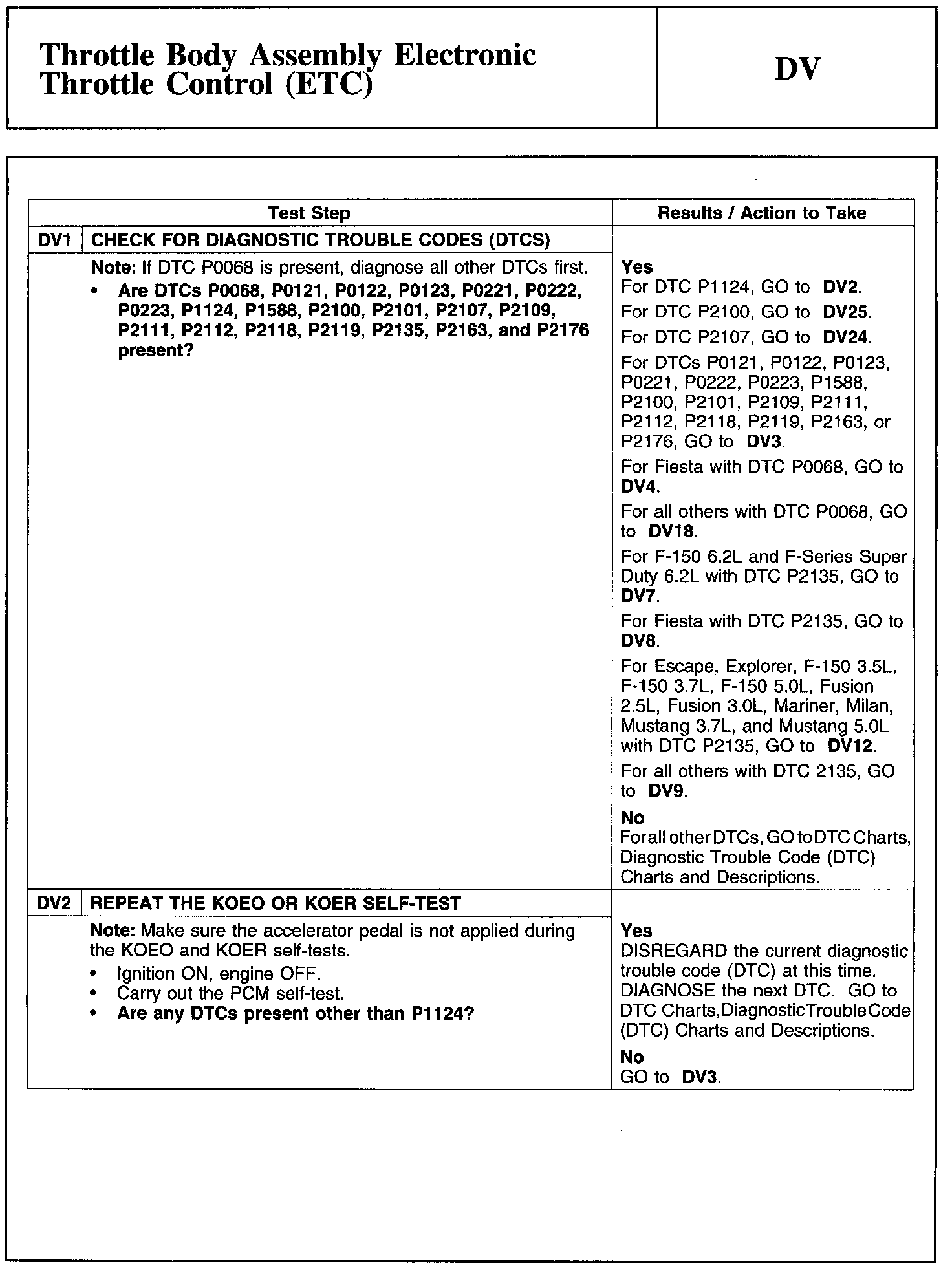 PINPOINT TEST DV: THROTTLE BODY ASSEMBLY ELECTRONIC THROTTLE CONTROL (ETC)