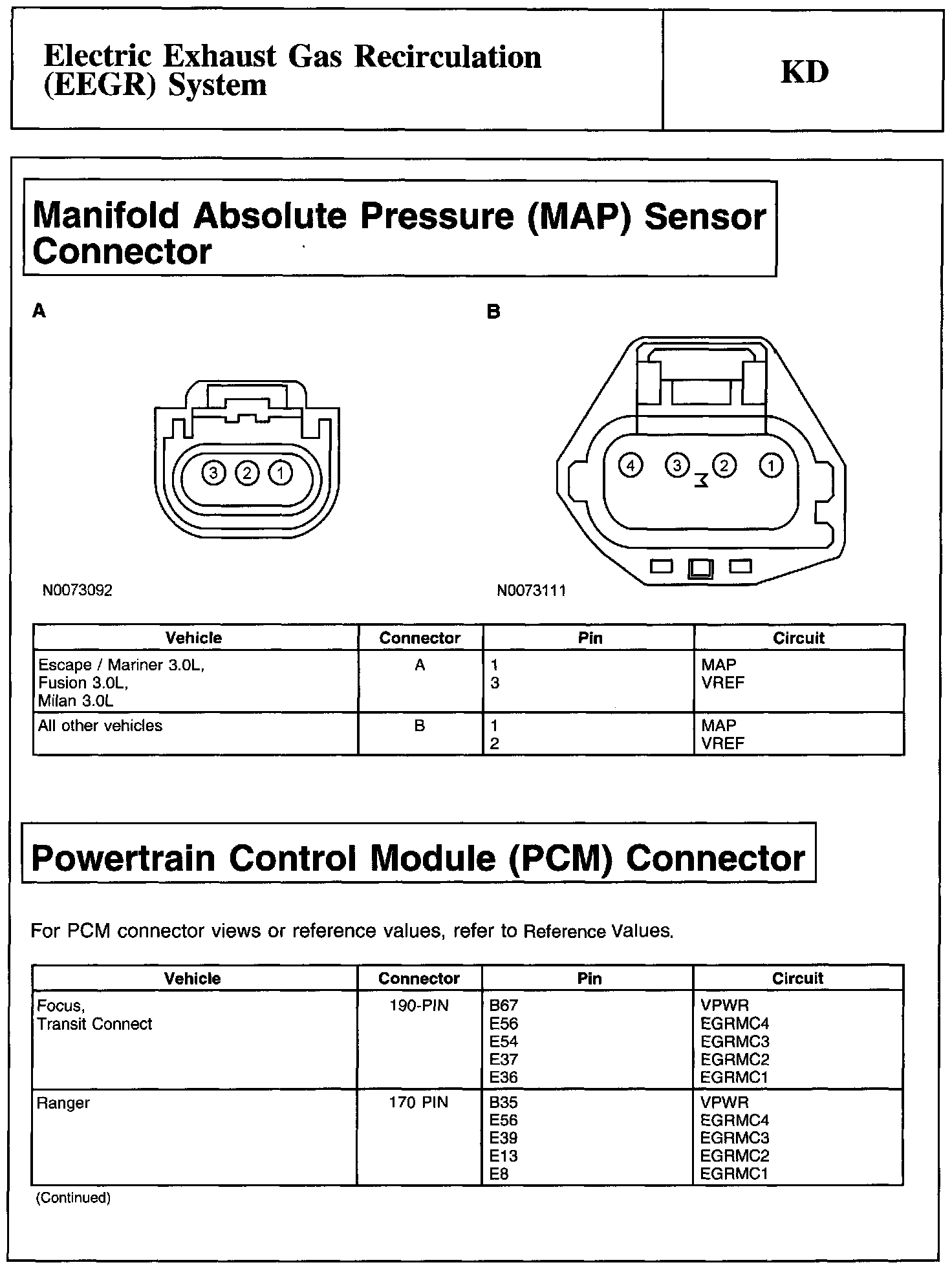 Home >> Ford >> 2011 >> Transit Connect L4-2.0L >> Repair and Diagnosis >> Powertrain Management >> Computers and Control Systems >> Testing and Inspection >> Pinpoint Tests >> Test KD: Electric Exhaust Gas Recirculation (EEGR) System