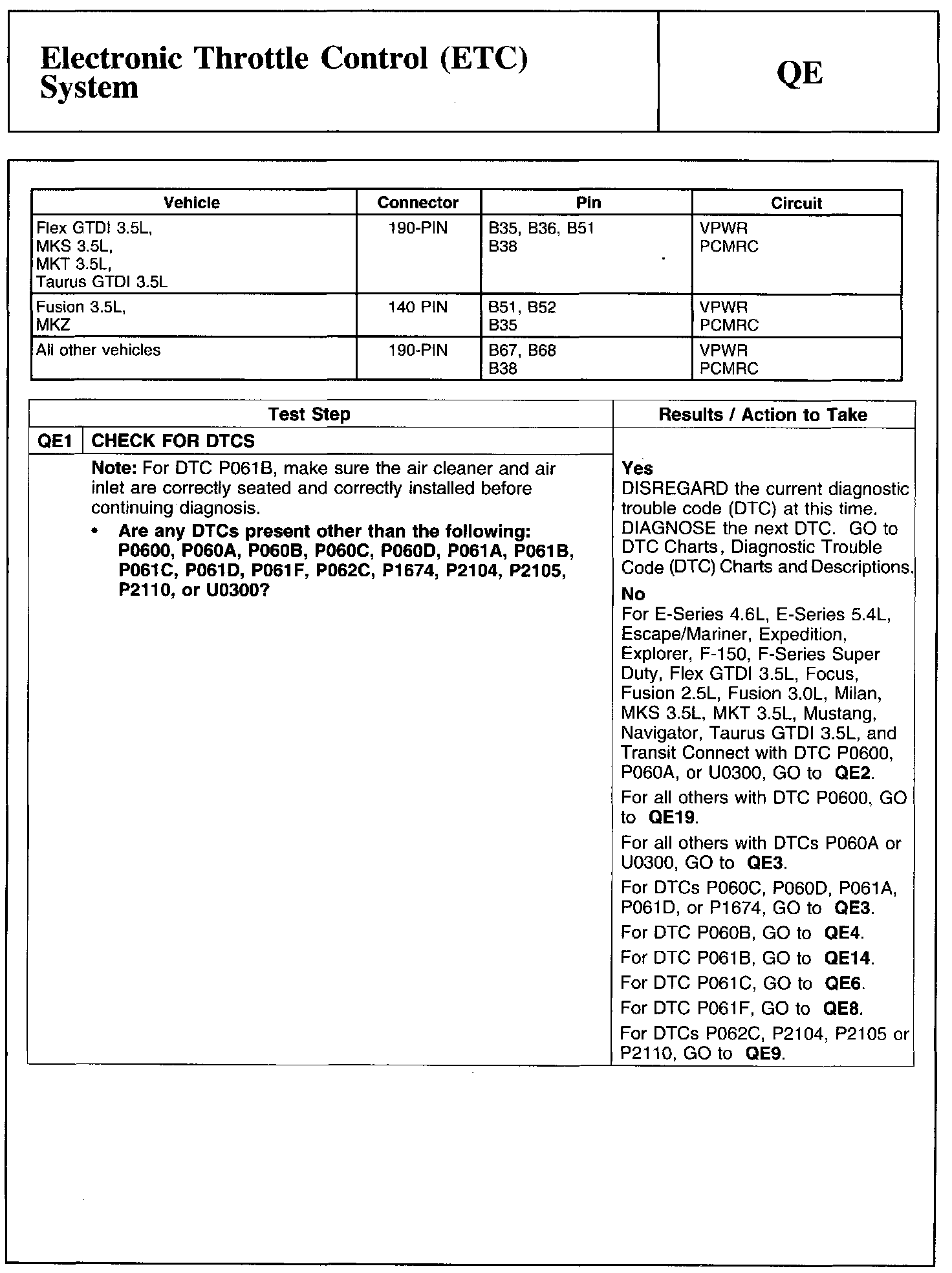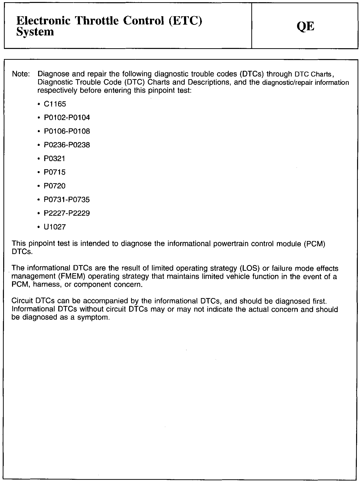 PINPOINT TEST QE: ELECTRONIC THROTTLE CONTROL (ETC) SYSTEMNote: