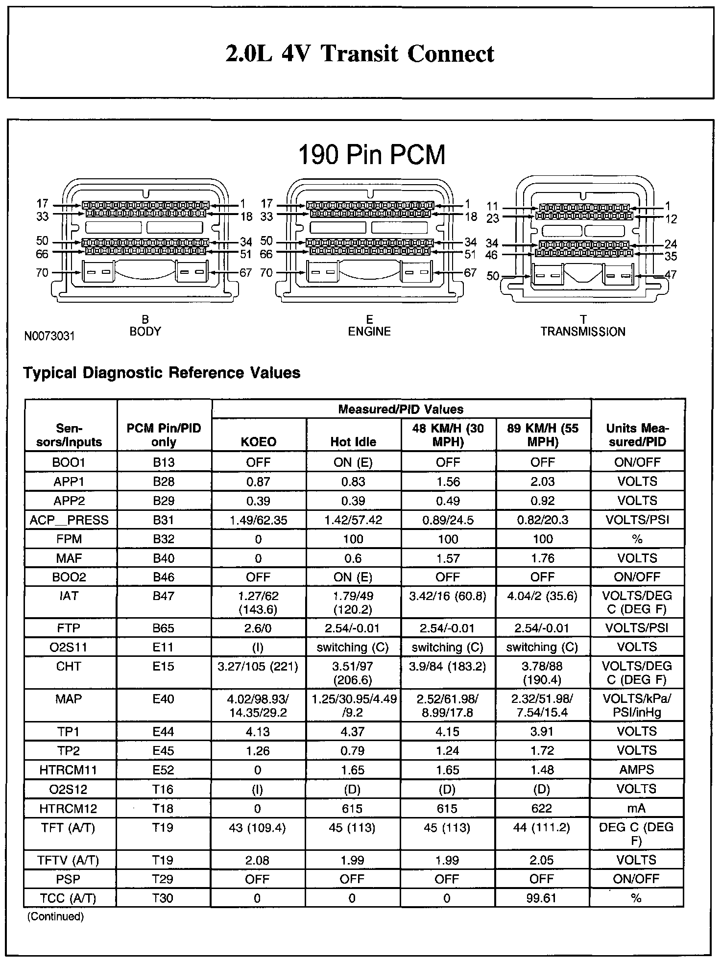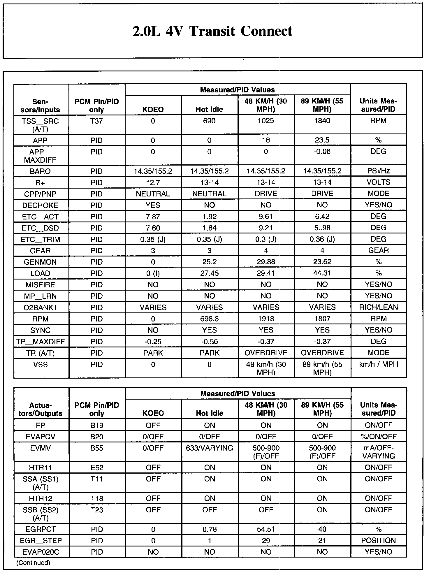 Home >> Ford >> 2011 >> Transit Connect L4-2.0L >> Repair and Diagnosis >> Powertrain Management >> Computers and Control Systems >> Testing and Inspection >> Scan Tool Testing and Procedures >> Typical Diagnostic Reference Values