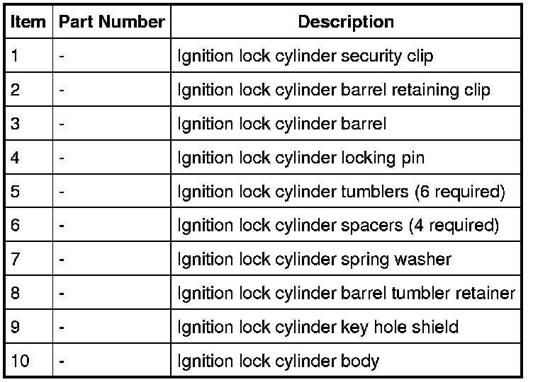 1. NOTE: The tumblers required can be determined from the vehicle keycode. If necessary, the factory keycode can be obtained from authorized dealership personnel.
