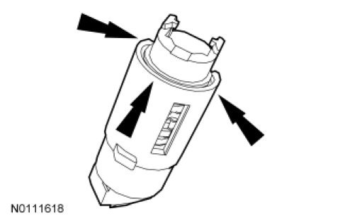 7. Slide the ignition lock cylinder body onto the ignition lock cylinder barrel.