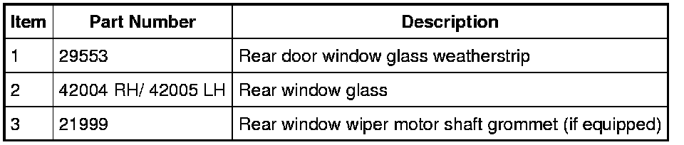 5. If reinstalling the same rear door glass, remove the remaining urethane adhesive from the glass leaving a thin layer to bond with the new urethane adhesive bead.