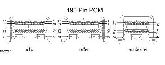 Powertrain Control Module (PCM) Connector - For PCM connector views or reference values, refer to Reference Values.