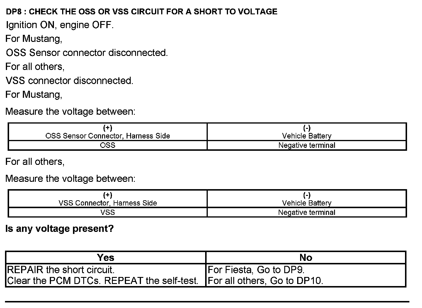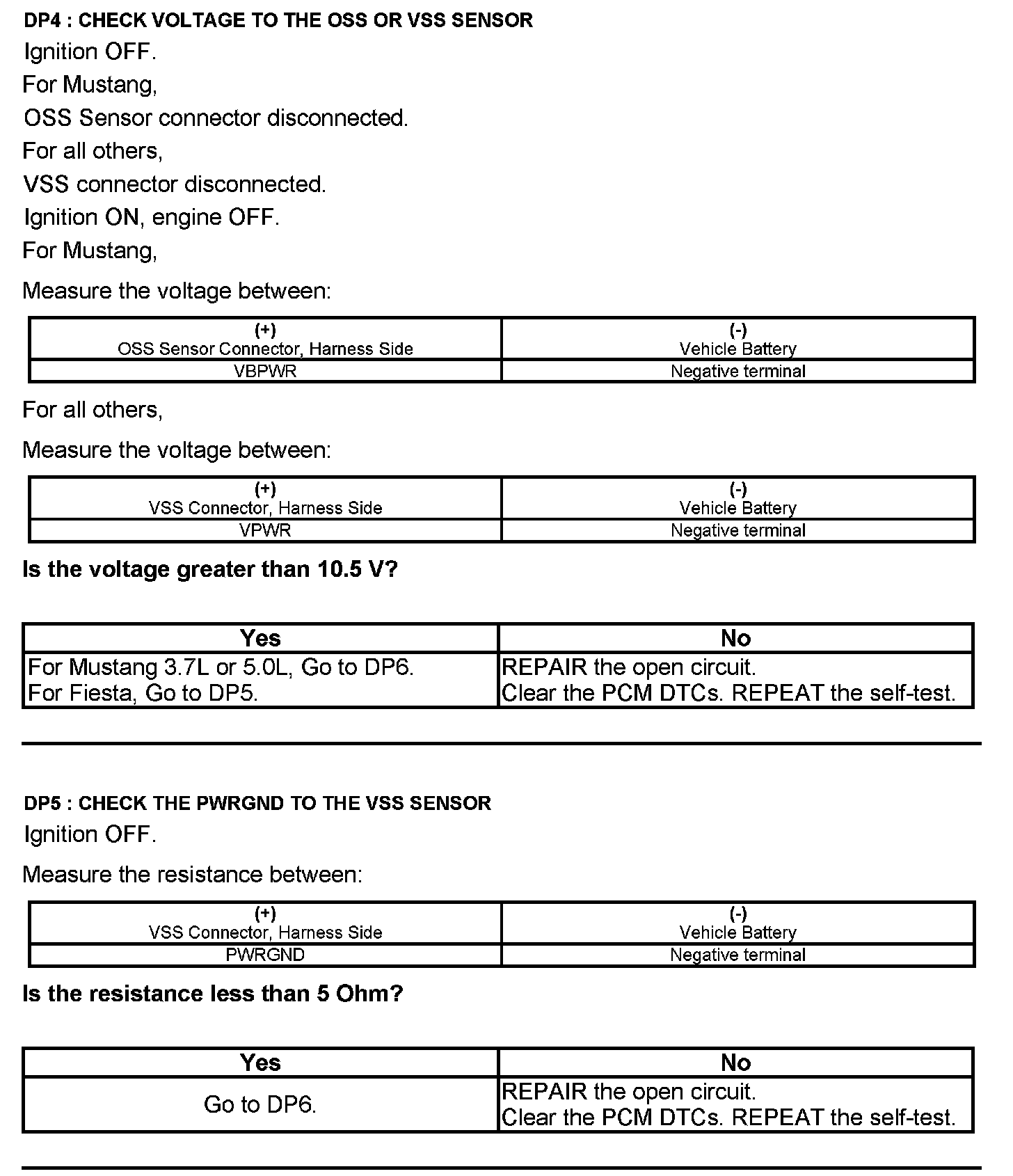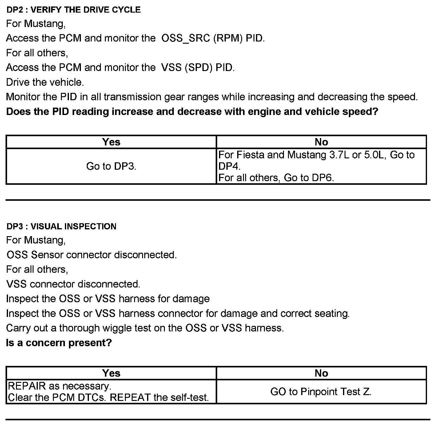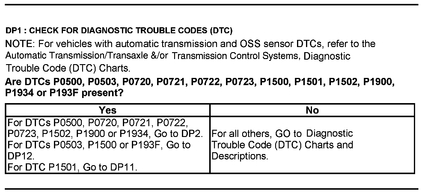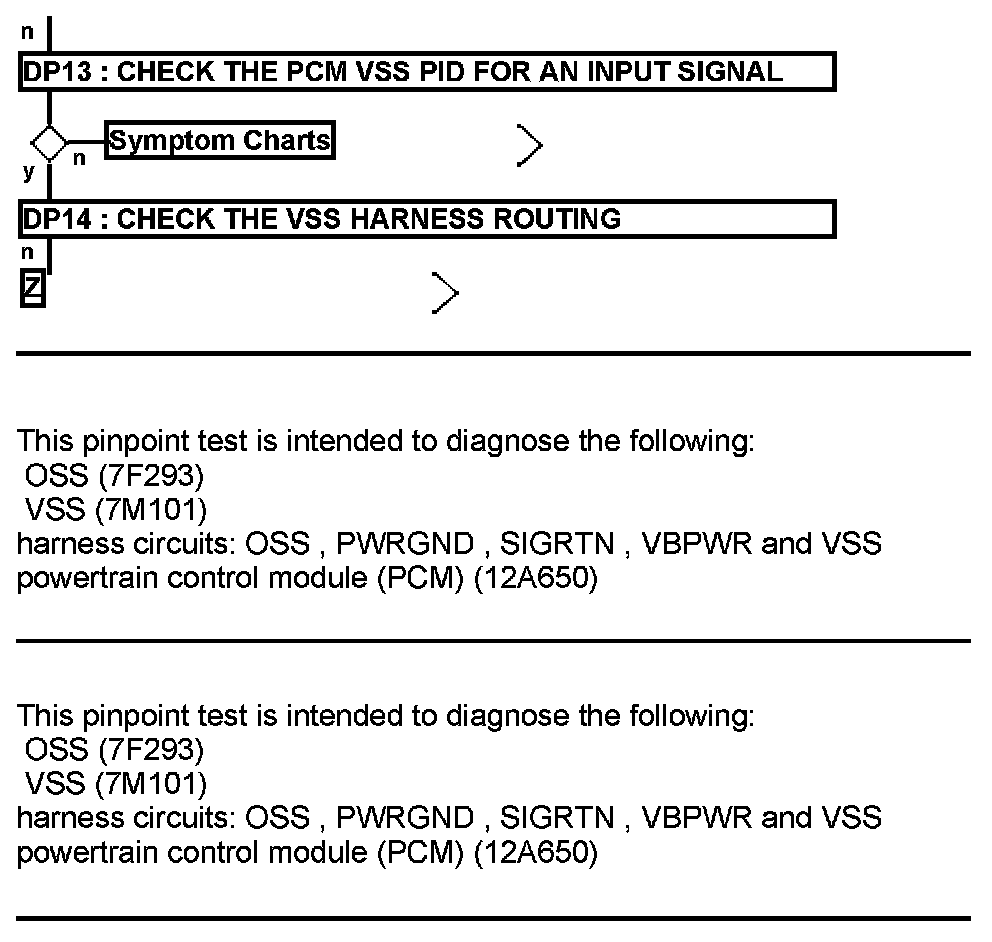 Home >> Ford >> 2012 >> E 150 V8-4.6L >> Repair and Diagnosis >> Powertrain Management >> Computers and Control Systems >> Testing and Inspection >> Pinpoint Tests >> Test DP: Output Shaft Speed (OSS) Sensor/Vehicle Speed Sensor (VSS)