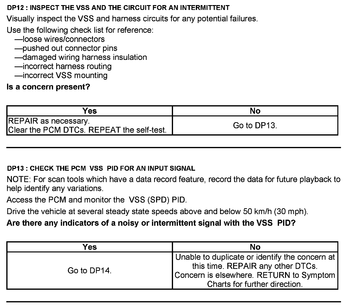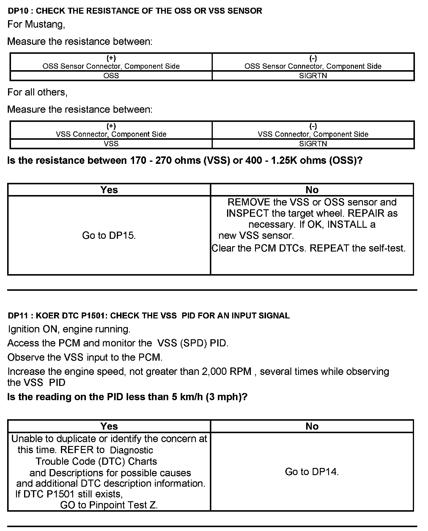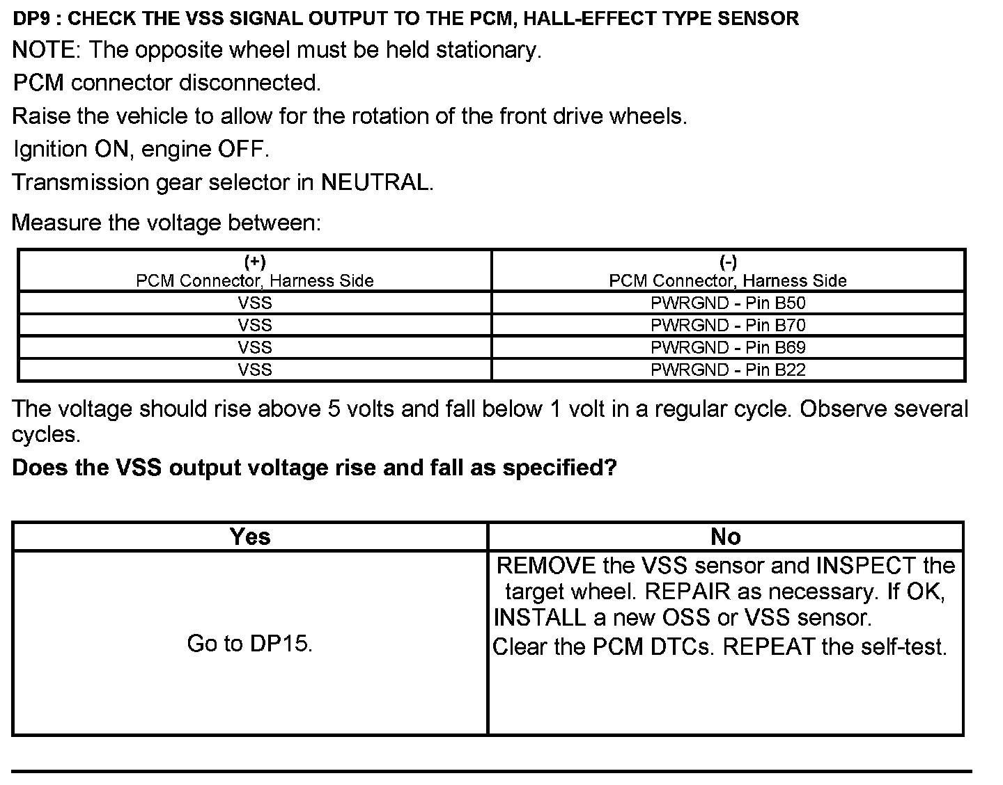 Test DP: Output Shaft Speed (OSS) Sensor/Vehicle Speed Sensor (VSS)