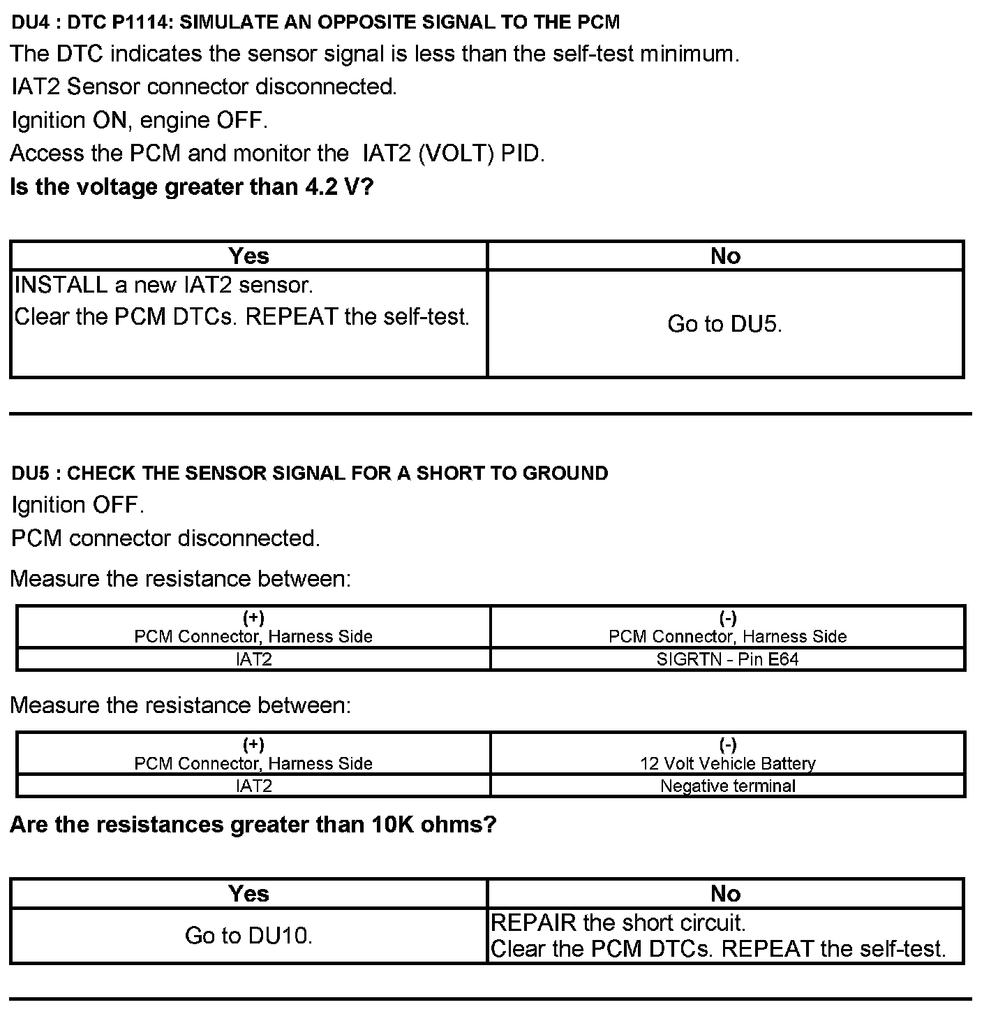 Home >> Ford >> 2012 >> E 150 V8-4.6L >> Repair and Diagnosis >> Powertrain Management >> Computers and Control Systems >> Testing and Inspection >> Pinpoint Tests >> Test DU: Intake Air Temperature 2 (IAT2) Sensor