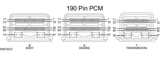 Powertrain Control Module (PCM) Connector - For PCM connector views or reference values, refer to Reference Values.