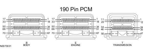 Powertrain Control Module (PCM) Connector - For PCM connector views or reference values, refer to Reference Values.