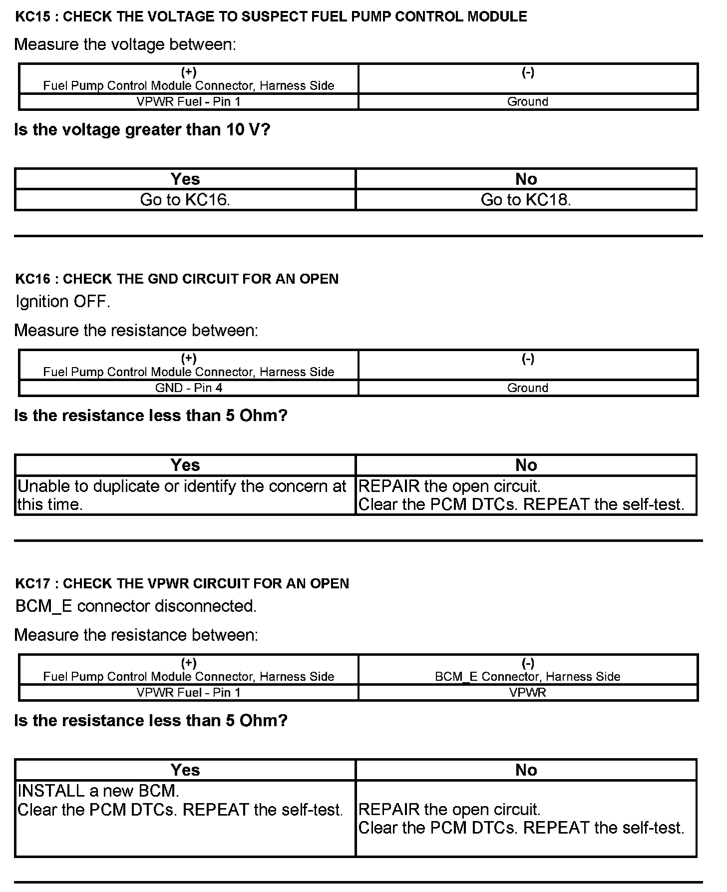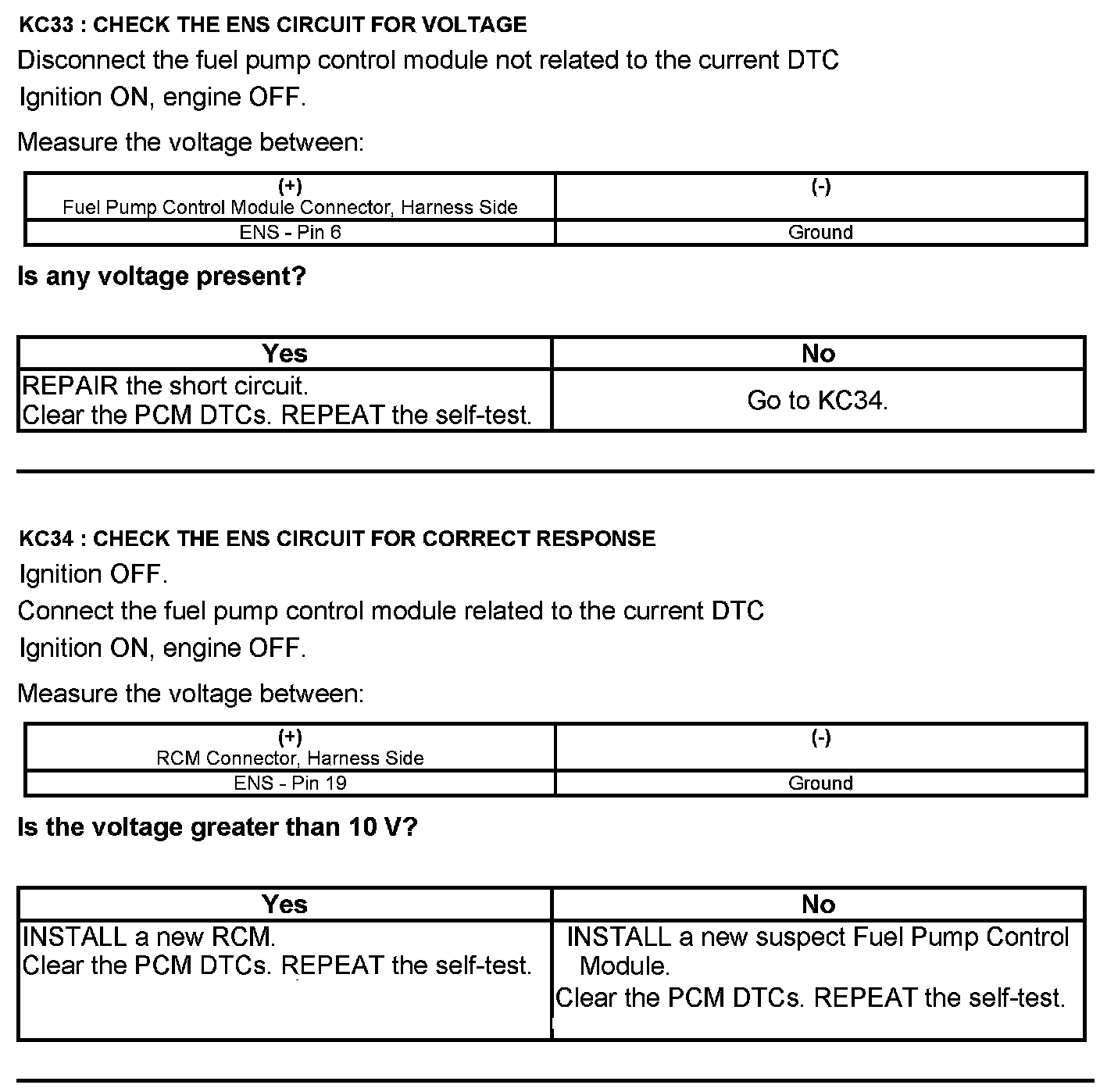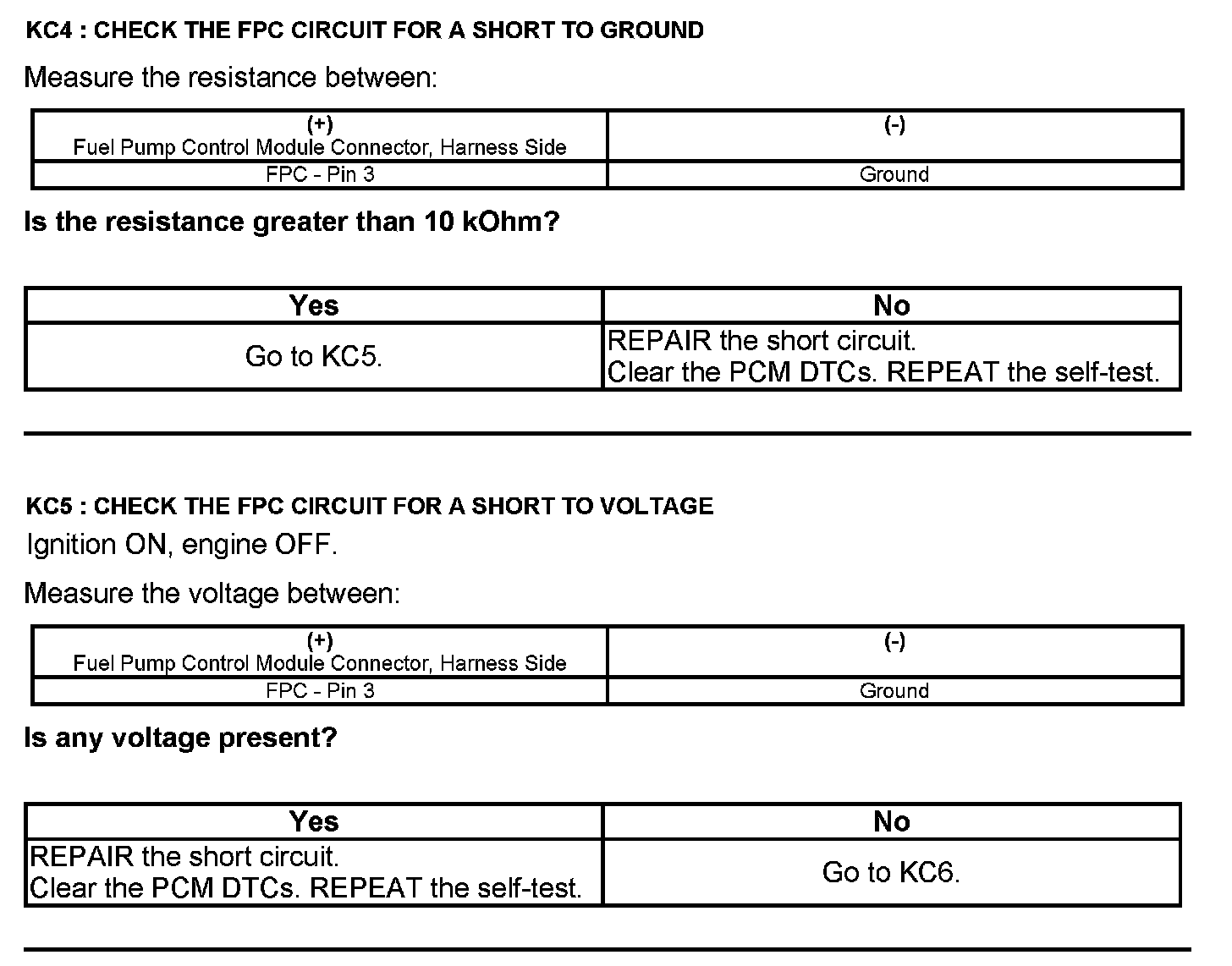 Home >> Ford >> 2012 >> E 150 V8-4.6L >> Repair and Diagnosis >> Powertrain Management >> Computers and Control Systems >> Testing and Inspection >> Pinpoint Tests >> Test KC: Fuel Pump Control Module