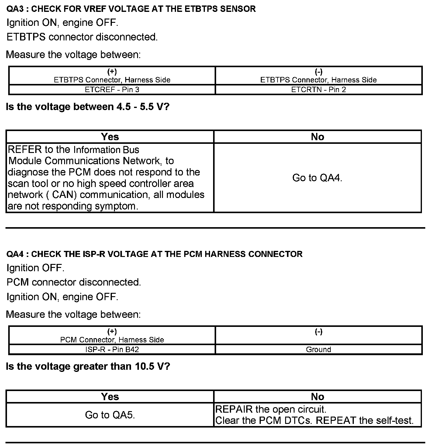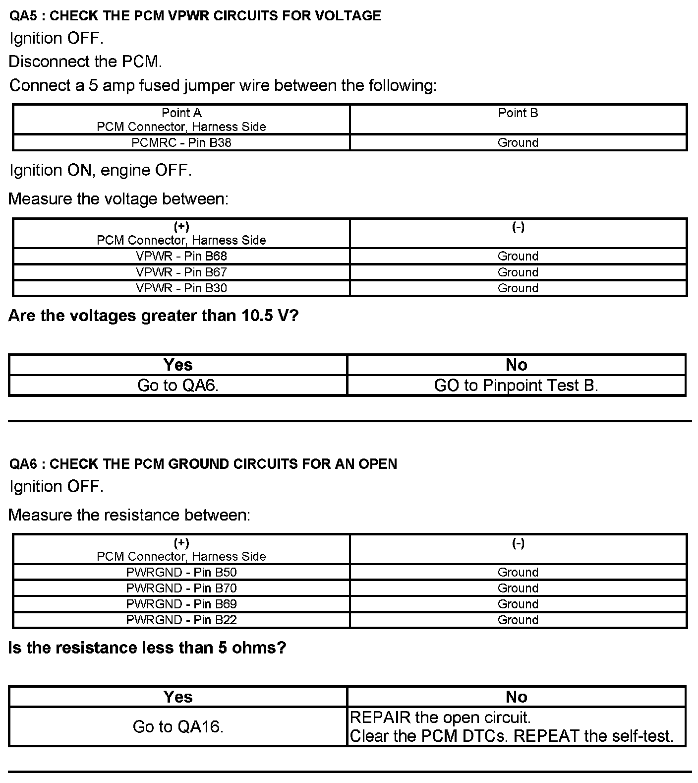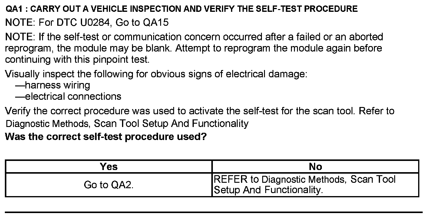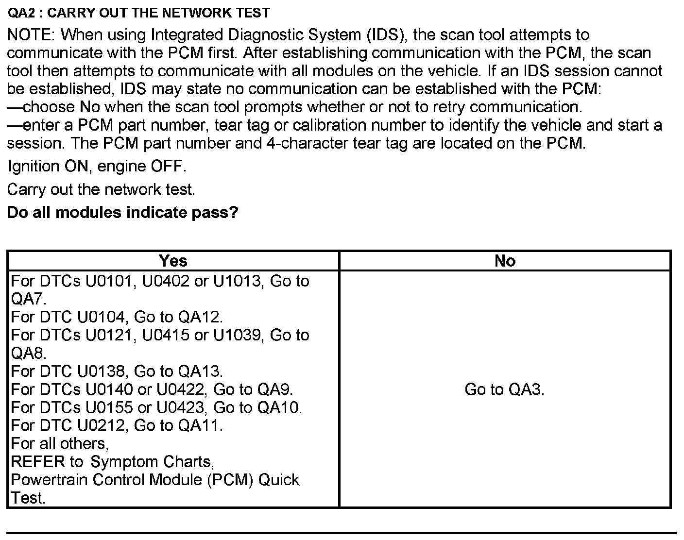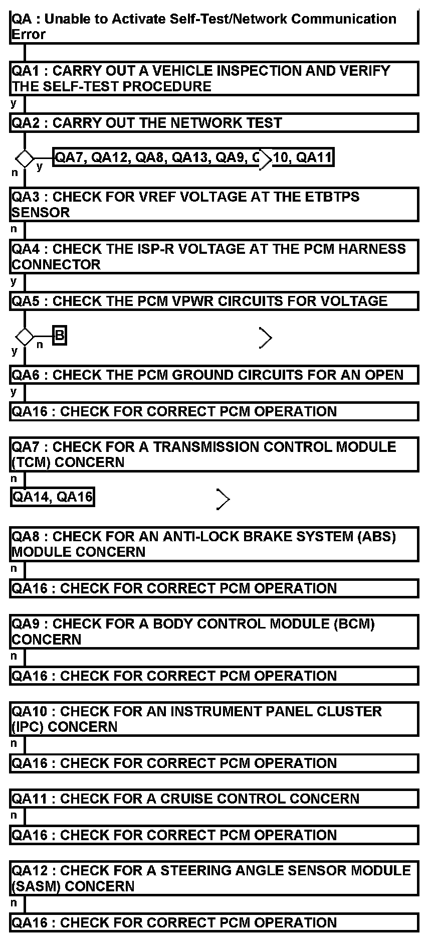 Home >> Ford >> 2012 >> E 150 V8-4.6L >> Repair and Diagnosis >> Powertrain Management >> Computers and Control Systems >> Testing and Inspection >> Pinpoint Tests >> Test QA: Unable to Activate Self-Test/Network Communication Error