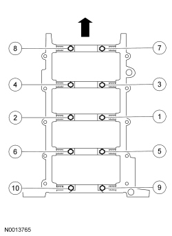 Install the 10 side bolts and tighten them in 2 stages, in the sequence shown.