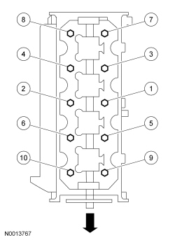 NOTICE: The cylinder head bolts must be discarded and new bolts installed. They are torque-to-yield designed and cannot be reused. Failure to follow these instructions may result in engine damage.