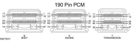 Powertrain Control Module (PCM) Connector - For PCM connector views or reference values, refer to Reference Values.