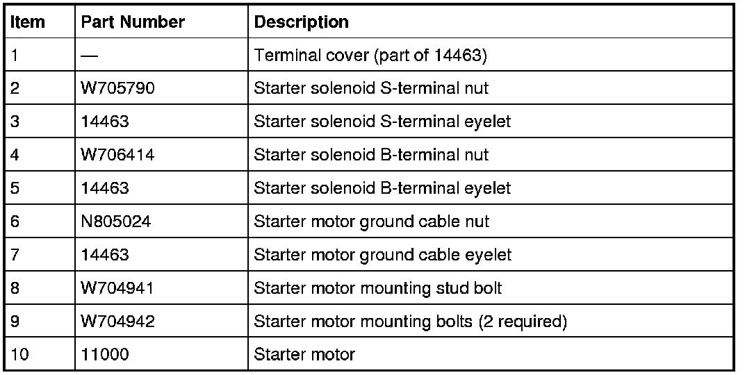 WARNING: Always disconnect the battery ground cable at the battery before disconnecting the starter motor battery terminal lead. If a tool is shorted at the starter motor battery terminal, the tool can quickly heat enough to cause a skin burn. Failure to follow this instruction may result in serious personal injury.