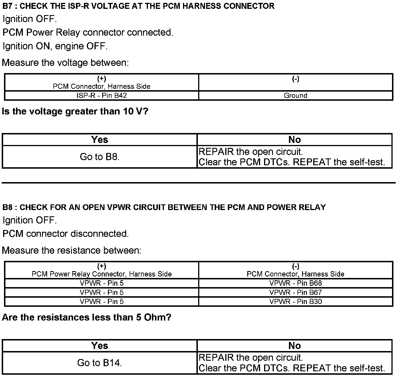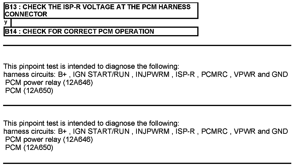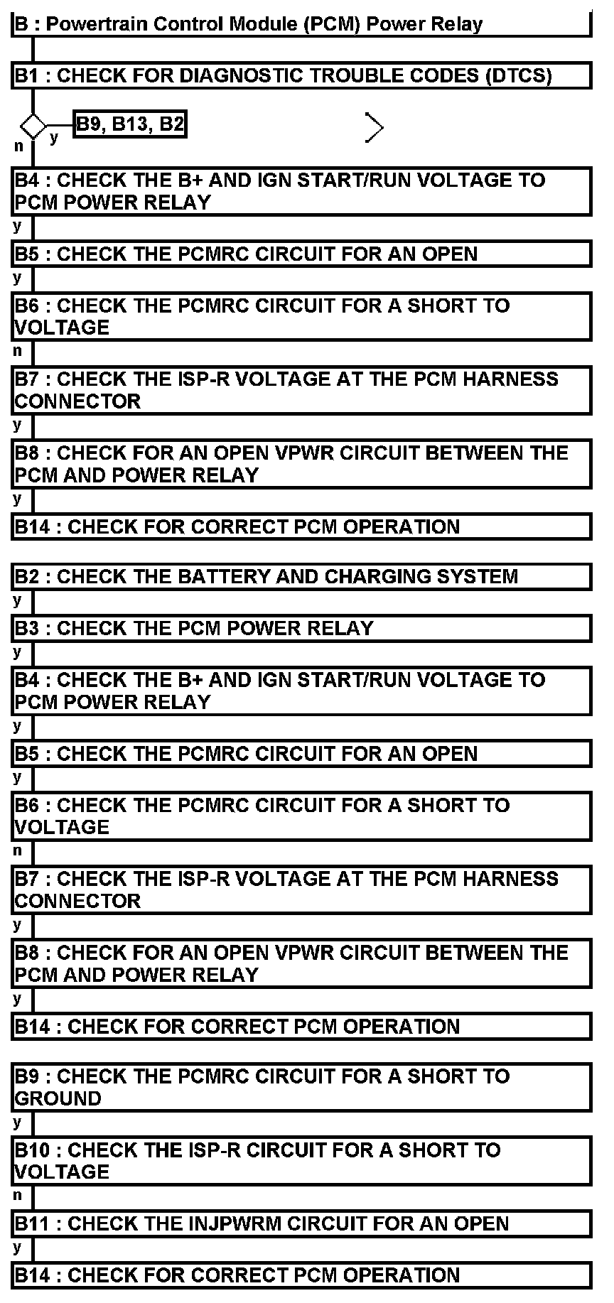 Home >> Ford >> 2012 >> E 250 V8-5.4L >> Repair and Diagnosis >> Powertrain Management >> Computers and Control Systems >> Testing and Inspection >> Pinpoint Tests >> Test B: Powertrain Control Module (PCM) Power Relay