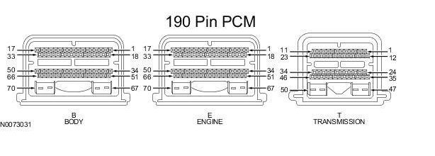Powertrain Control Module (PCM) Connector - For PCM connector views or reference values, refer to Reference Values.