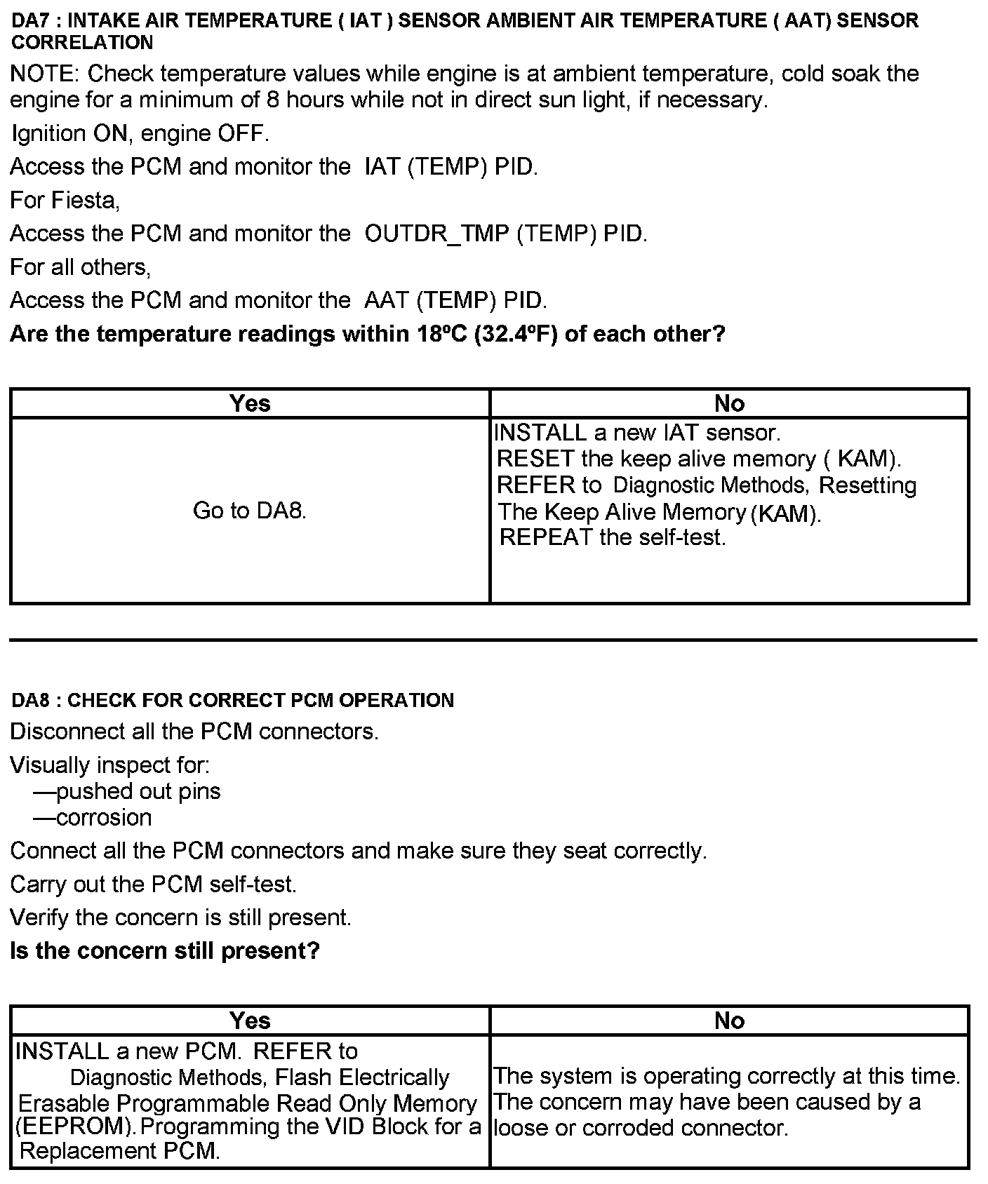 Home >> Ford >> 2012 >> E 250 V8-5.4L >> Repair and Diagnosis >> Powertrain Management >> Computers and Control Systems >> Testing and Inspection >> Pinpoint Tests >> Test DA: Intake Air Temperature (IAT) Sensor
