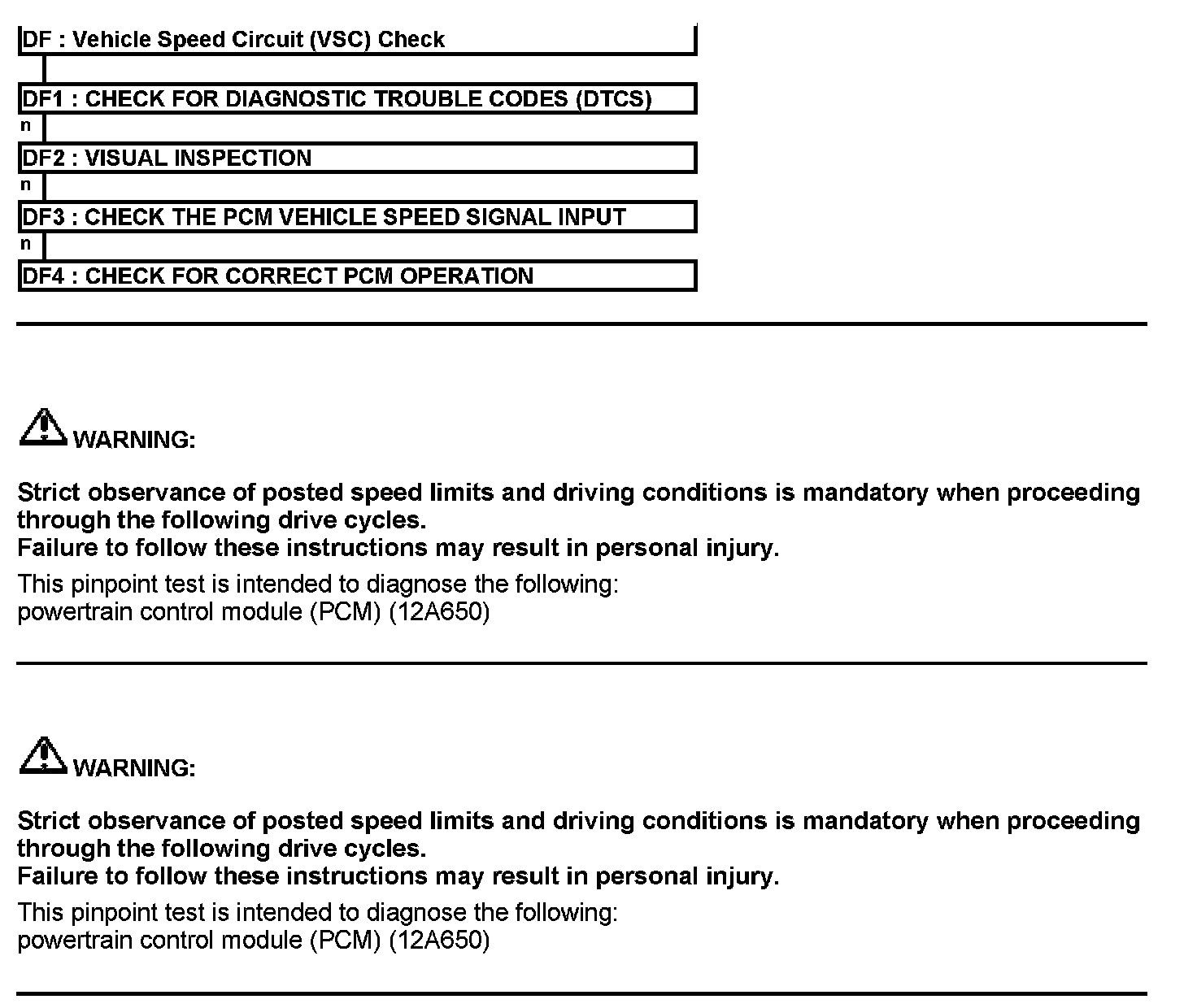 Test DF: Vehicle Speed Circuit (VSC) Check
