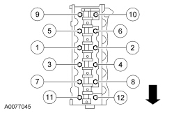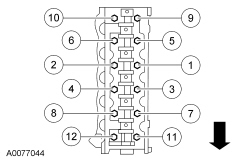 Tighten the 12 cylinder head bolts in 3 stages in the sequence shown.