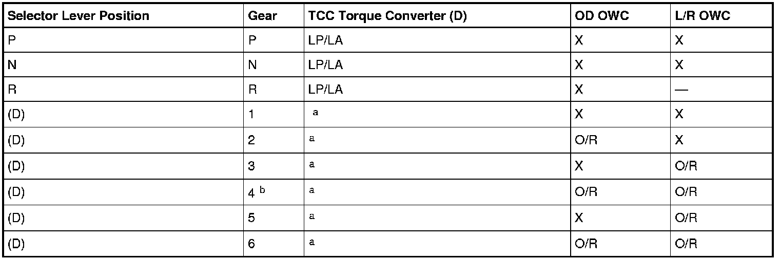 Clutch, Solenoid, Application Chart (A)