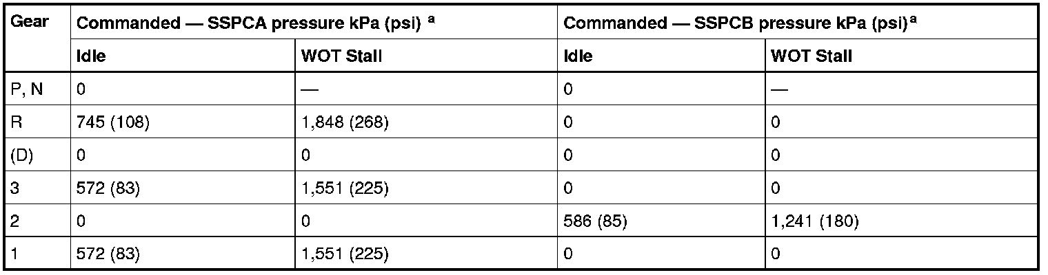 NOTE: Actual and commanded pressures vary based on calibration and transmission adaptive strategies. All pressures listed are approximate.