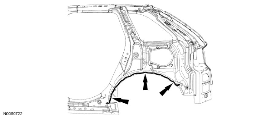 NOTE: Remove the outer body sheet metal from the affected area prior to carrying out any reinforcing panel replacement. Refer to Sectioning Guidelines .