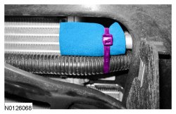 NOTE: The A/C condenser for this vehicle is produced from the factory with a receiver/drier desiccant bag installed in the integrated receiver/drier. This receiver/drier desiccant bag may become contaminated with moisture if the A/C condenser is not installed for an extended period of time. Since it cannot be determined how much time has elapsed between production and installation of the unit as a service part, the receiver/drier desiccant bag must be removed and replaced with the separate receiver/drier desiccant bag, which is supplied together with the A/C condenser service part kit. For additional information, refer to Desiccant Bag .